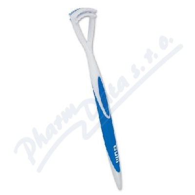Škrabka na odstranění plaku z jazyka. Z jedné strany je velmi šikovná škrabka a z druhé strany je kartáček na jazyk.