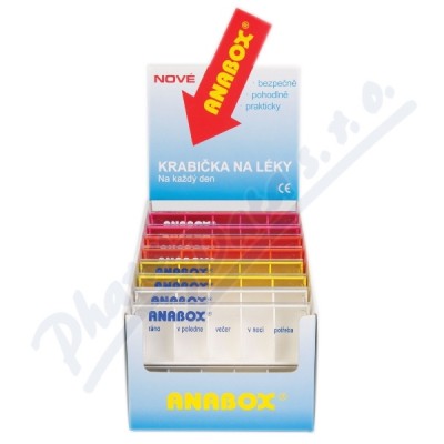 Dávkovač na léky ANABOX denní box barevně rozliš.
