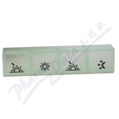 Slouží k přehlednému uspořádání a spolehlivému dávkování léků či potravinových doplňků doma i na cestách. Je označen jednoduchými symboly zobrazujícími denní dobu. Dostupný v několika barevných provedeních. Velikost dávkovače 110 x 22 x 20mm (d x š x v).