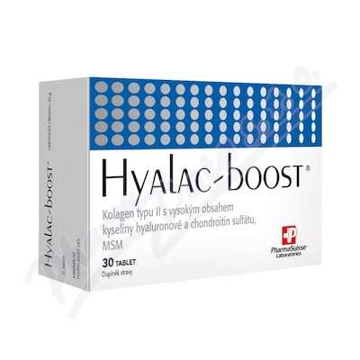 HYALAC-BOOST je doplněk stravy obsahující kolagen typu II (BioCell Collagen®) s vysokým obsahem kyseliny hyaluronové, MSM a mléčné peptidy (OsteolTM).
