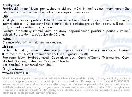 Probiotický intimní krém pro suchou a citlivou vnější intimní oblast, který napomáhá udržovat přirozenou mikrobiální flóru ve vnější intimní oblasti.