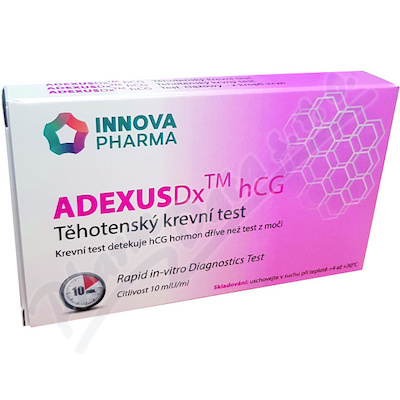Těhotenský krevní test z kapky krve je mnohem citlivější a přesnější než klasický test z moči. Krevní těhotenský test ADEXUSDx dokáže rozpoznat těhotenství o 3-4 týdny dříve, cca 2.-3. den po začátku hnízdění vajíčka, respektive 8.-9. den po oplodnění.