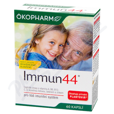 Doplněk stravy Immun44® 60 kapslí s rostlinnými výtažky,PHYTO-PANMOL®-vitamíny a dalšími mikroživinami pro normální fungování imunitního systému.