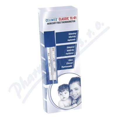 TEPLOMĚR LÉKAŘSKÝ SKLENĚNÝ BEZRTUŤOVÝ s Galiem. Rozsah měření: 35,0–42,0 °C, Rozlišení: 0,1 °C, Přesnost: + 0,1 °C, Teplota skladování: 20–42 °C, Teploměrem lze měřit: v ústech, v konečníku nebo v podpaží (doba měření 3-5 minut, dle způsobu měření).