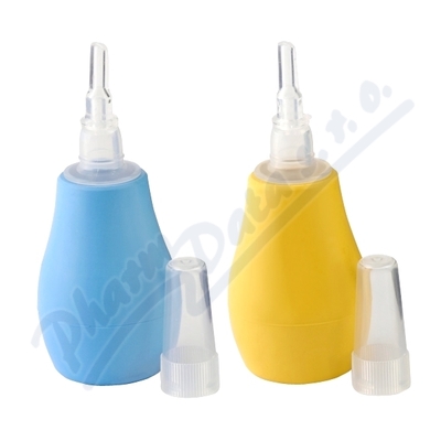 Nosní odsávačka slouží k odsávání hlenu, který se tvoří v nose miminka, když je nemocné. Výrobek obsahuje průhledné části a gumový balónek.
