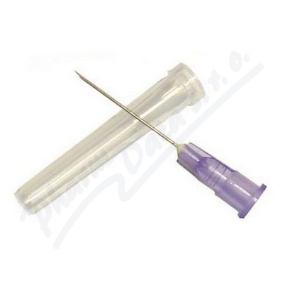 Injekční hypodermická podkožní jehla pro jedno použití s velimi ostrým hrotem. Balená jednotlivě v odlišném barevném blistru.