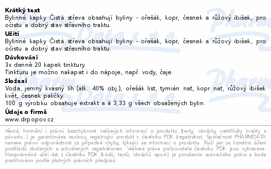 Bylinné kapky Čistá střeva obsahují byliny - ořešák, kopr, česnek a růžový ibišek, pro očistu a dobrý stav střevního traktu.