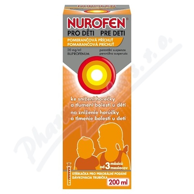 Nurofen pro děti se užívá ke snížení horečky (včetně horečky vzniklé po očkování), dále k tlumení mírných až středně těžkých bolestí, jako jsou bolesti hlavy, zubů nebo uší, bolesti v krku, bolesti spojené s podvrknutím nebo zhmožděním. Pomeranč. aroma. Čtěte pozorně příbalový leták.