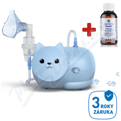 Inhalátor kompresorový, přívětivý design pro děti (tvar kočka).Trápí Vás rýma, kašel, nachlazení? Účinná pomoc také při ucpaném nosu, běžných nachlazeních, alergické rýmě,...Snadné použití a čištění. Nosní sprcha k dokoupení/volitelné příslušenství.