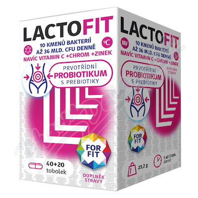 Prvotřídní probiotikum s prebiotiky, s vlákninou, vitaminem C, chromem a zinkem. Denní dávka přípravku obsahuje 10 kmenů střevních bakterií až 36 miliard CFU. Acidorezistivní tobolky zaručí průchod aktivním buňkám až do tenkého střeva.