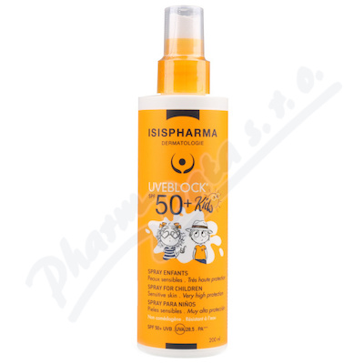 UVEBLOCK sprej pro děti s velmi vysokou ochranou SPF 50+, obsahuje vysoce kvalitní sluneční filtry, které poskytují širokospektrální ochranu proti UVA, UVB a IR záření. Přípravek je speciálně vyvinutý pro potřeby citlivější dětské pokožky.