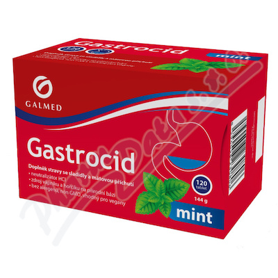 Gastrocid Mint je doplněk stravy se sladidly a mátovou příchutí. Je využíván pro podporu normální činnosti trávící soustavy, střev a proti nadýmání.