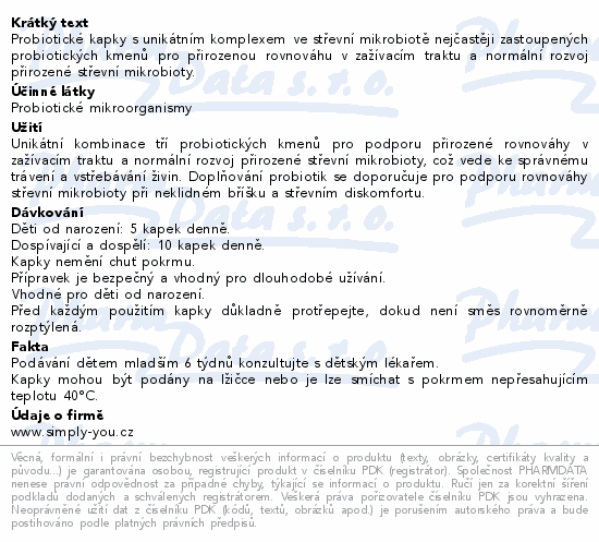 Probiotické kapky s unikátním komplexem ve střevní mikrobiotě nejčastěji zastoupených probiotických kmenů pro přirozenou rovnováhu v zažívacím traktu a normální rozvoj přirozené střevní mikrobioty.