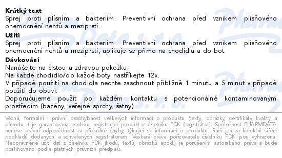 Sprej proti plísním a bakteriím. Preventivní ochrana před vznikem plísňového onemocnění nehtů a meziprstí.
