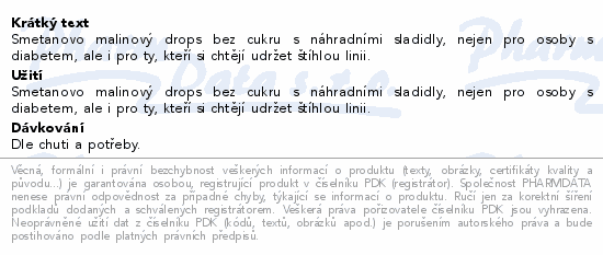 Smetanovo malinový drops bez cukru s náhradními sladidly, nejen pro osoby s diabetem, ale i pro ty, kteří si chtějí udržet štíhlou linii.