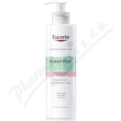 Eucerin exfoliační čisticí gel s trojitým účinkem působí proti nedokonalostem pleti, proti hyperpigmentaci pleti a proti lesku pleti.