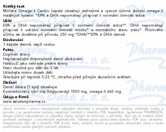 Möllers Omega-3 Cardio kapsle obsahují jedinečné a vysoce účinné složení omega-3 mastných kyselin. *EPA a DHA napomáhají přispívat k normální činnosti srdce.