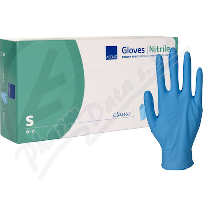 Vyšetřovací nitrilové rukavice Abena Classic, nepudrované, nesterilní. Dostupné ve velikostech S, M, L. Lze je použít pro různé úkony, jako je úklid, ošetřování, manipulace s potravinami, laboratorní práce, manipulace s léky, apod..