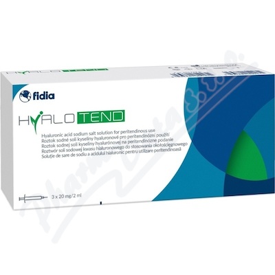 Hyalotend je viskózní roztok sodné soli kyseliny hyaluronové (500-730 kDa) získaný bakteriální fermentací v pufrovaném fyziologickém roztoku určený pro peritendinózní injekci.