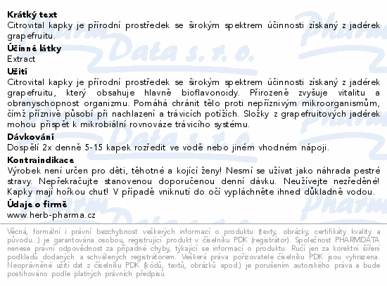 Citrovital kapky je přírodní prostředek se širokým spektrem účinnosti získaný z jadérek grapefruitu.