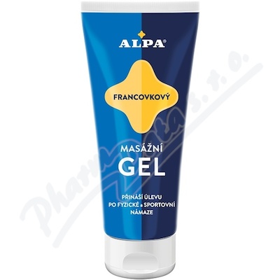 Bylinný gel ALPA je vhodný pro masáže pokožky v oblasti kloubů, svalů a páteře. Masáž „alpovou směsí bylin" (máta, eukalypt, rozmarýn, hřebíček, tymián aj.) má regenerační účinky a snižuje únavu a přítomnost mentolu podporuje lepší prokrvení pokožky.